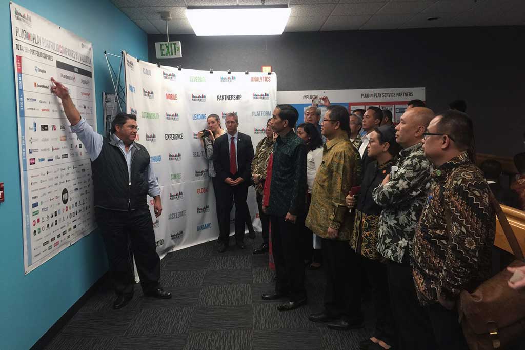 Saat tiba di Kantor Plug and Play Presiden disambut oleh CEO Plug and Play Saeed Amidi.