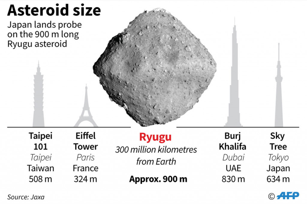 Kanagawa: Pesawat luar angkasa Jepang Hayabusa2 sukses melakukan pendaratan keduanya di asteroid incarannya, Ryugu, Kamis, 11 Juli 2019. Misi tersbeut dalam upaya untuk mengumpulkan sampel mineral yang dapat mengungkapkan lebih banyak tentang evolusi tata surya. AFP Photo/ISAS-JAXA/Behrouz Mehri Cek Berita dan Artikel yang lain di Google News