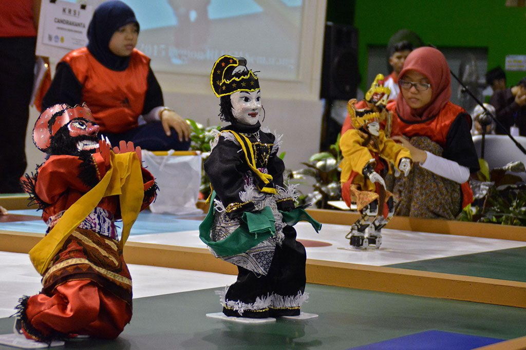 Robot pemadam api mencoba memadamkan api lilin pada Kontes Robot Indonesia 2015 Regional III Jateng-DIY di Universitas Semarang (USM)