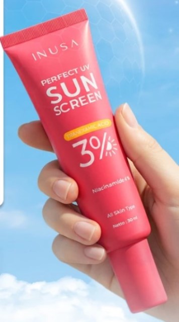 Inusa Perfect UV Sunscreen merupakan hybrid sunscreen (SPF 50 PA++++) yang ringan, cepat meresap, dan tidak lengket. Unggul dengan kandungan 3 persen tranexamic acid dan 4 persen niacinamide.