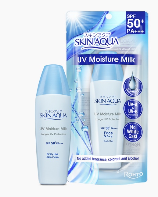 Skin Aqua UV moisture milk adalah pelembap yang dilengkapi dengan SPF 50+ dan PA +++ untuk melindungi kulit dari sinar UV-A dan UV-B secara menyeluruh.