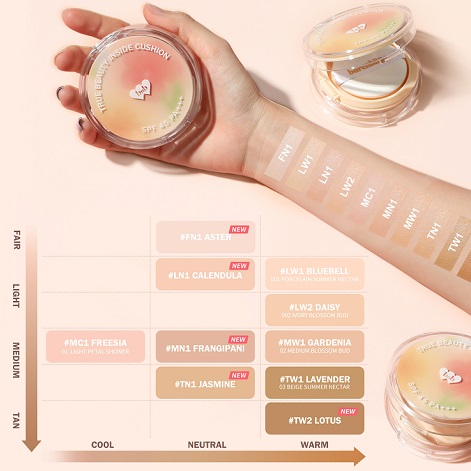 Teksturnya ringan dan buildable yang mampu melapisi dengan sempurna tanpa membuat tampilan wajahmu cakey dan kering ataupun berminyak, dengan sensasi seperti tanpa menggunakan make up tetapi kulit terlihat sehat dan cerah merata. Kini, True Beauty Inside Cushion tersedia dalam 10 shade yang mendukung kreasi bare make up untuk semua jenis warna kulit.
