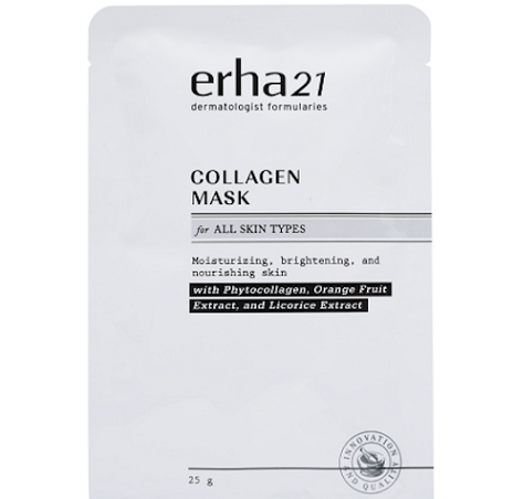 Masker ini memiliki manfaat anti-aging yang dapat sekaligus mencerahkan kulit. ERHA mengombinasikan hero ingredients, seperti phytocollagen, ekstrak jeruk, dan ekstrak licorice. Phytocollagen-nya bekerja meningkatkan elastisitas kulit dan menyamarkan garis halus.