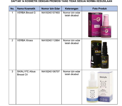 BPOM Cabut Izin Edar 14 Kosmetik dengan Promosi Melanggar Norma Kesusilaan, Ini Daftarnya!