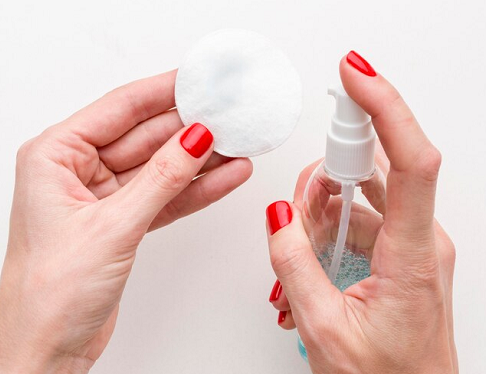 Menggosok alkohol atau pembersih tangan adalah dua cara terbaik untuk menghilangkan cat kuku tanpa memerlukan penghapus aseton. "Oleskan sedikit pada bola kapas dan letakkan di kuku," jelas Brittney Boyce, seniman kuku selebriti dan pendiri Nails of LA.Kemudian, diamkan berkisar 10 detik dan gosok perlahan ke depan dan ke belakang. Cat kuku akan cepat hilang. Hati-hati dengan aromanya yang mungkin terlalu menyengat!