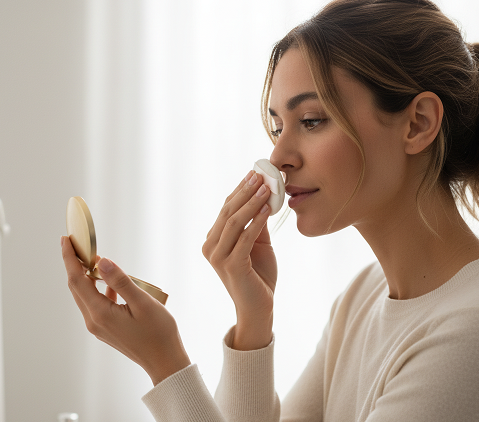 (Karena mengandung foundation, two way cake mampu menutupi noda hitam, bekas jerawat, dan warna kulit yang tidak merata. Foto: Dok. Gemini AI)