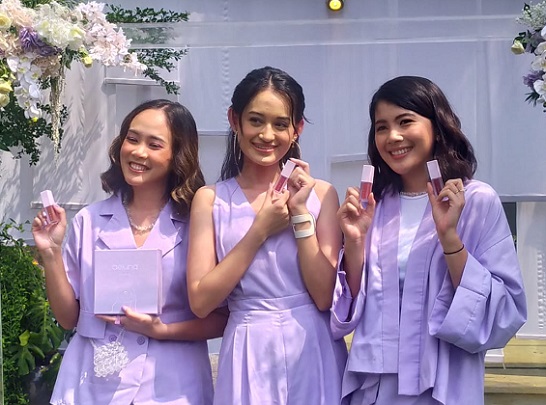 (Almiranti, Nadya, dan Ayu dalam acara konferensi pers peluncuran Aeluna Lush Lip Oil, Senin, 25 Juli 2022, di Cilandak, Jakarta. Foto: Dok. Yuni)