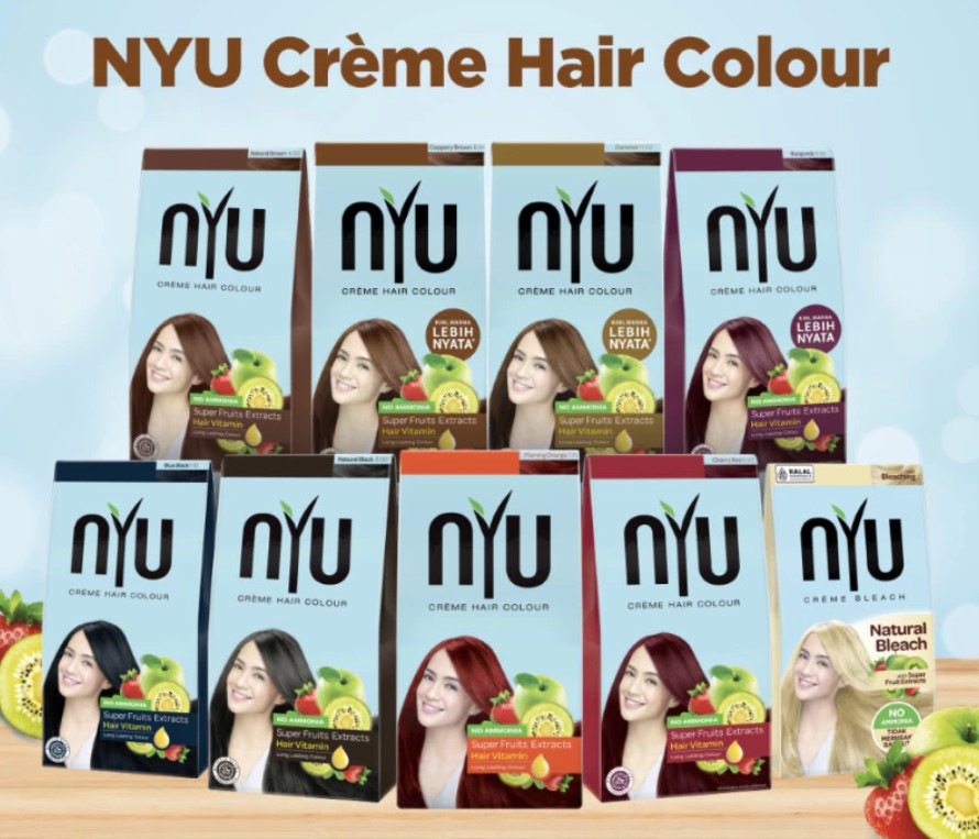 NYU creme hair colour hadir dengan formula tanpa amonia yang tidak menimbulkan bau menyengat, sehingga proses pewarnaan terasa lebih nyaman.