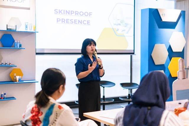 (Theresia Sinandang selaku Head of Skinproof mengatakan sebenarnya kamu harus waspada terhadap produk komestik yang terlalu berlebihan dalam melakukan pemasaran. Jadi, penting untuk mengetahui kondisi dan kondisi kulit agar dapat mendapatkan produk yang sesuai. Foto: Dok. Medcom.id/Aulia Putriningtias)