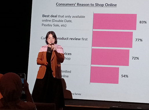(Amanda Mellisa saat memaparkan laporan "Beauty Consumer Behavior and Trend Report dari Insight Factory by SOCO." Foto: Dok. Yuni)