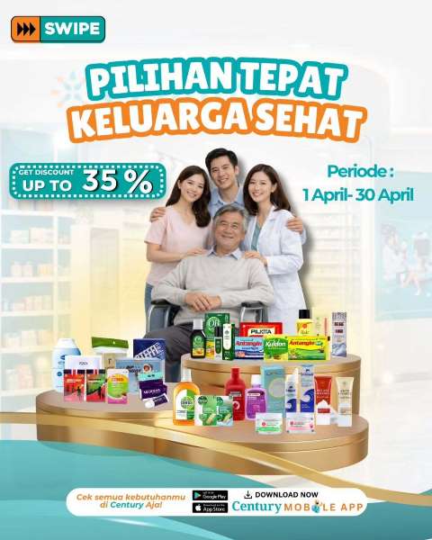 Century juga ikut meramaikan promo April dengan diskon sampai 35%. Tidak cuma produk obat-obatan, tetapi juga berbagai produk wellness dan skincare ikut dapat potongan harga. Pilihan brand-nya cukup lengkap, jadi bisa sekalian eksplor produk baru.