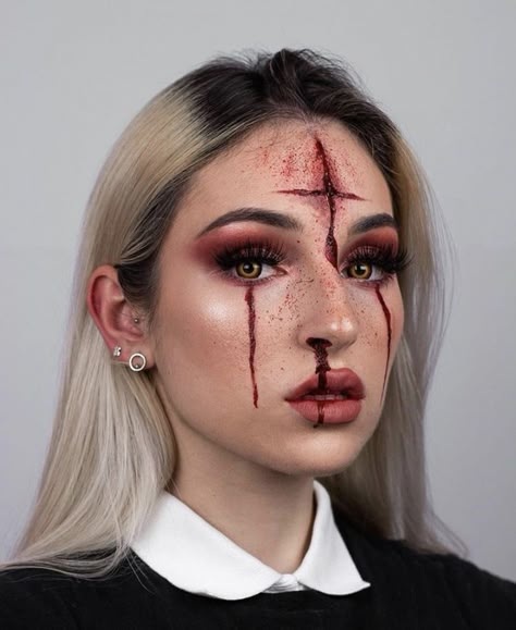 Look ini terlihat rumit, tapi gampang dibuat! Kamu bisa buat wajahmu seperti luka dan berdarah dengan langkah ini untuk tampilan menakutkan tapi artistik.