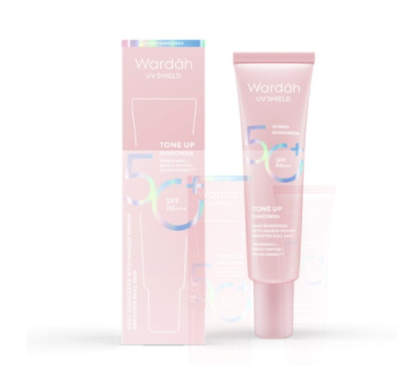 Wardah UV Shield Tone Up Sunscreen SPF 50 PA+++ diklaim memiliki kemampuan memberikan efek cerah alami tanpa meninggalkan whitecast.