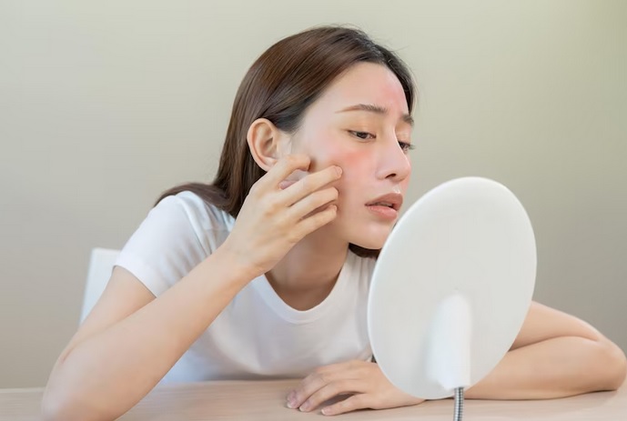 Efek utama yang mungkin timbul ketika terlalu banyak menggunakan skincare adalah alergi kulit. Alergi ditandai dengan rasa gatal dan muncul ruam yang berwarna kemerahan pada kulit wajah.