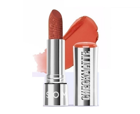 Memiliki tekstur halus yang membuat bibir tampak mulus. Formulasi pelembapnya bisa menjaga bibir tetap terhidrasi. Memiliki warna merah kecokelatan yang bold, lipstik ini cocok untuk kamu yang suka tampil beda. Saat memoleskan ke bibir, akan memberikan tampilan warna intens dengan hasil akhir mengilap. Kisaran harga Rp40 ribuan.SOMETHINC - Checkmatte Transferproof Lipstick 11 Joker