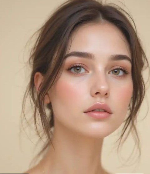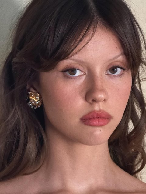Sapuan maskara yang memanjangkan bulu mata dan sapuan lipstik pink-nude tipis menambahkan sentuhan akhir, tanpa membuat kulit yang hampir tak tersentuh menjadi terlalu mencolok.