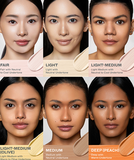 Rentang warnanya mulai dari fair, light, medium, hingga deep peach, sehingga dapat menjawab kebutuhan beragam skintone lokal.