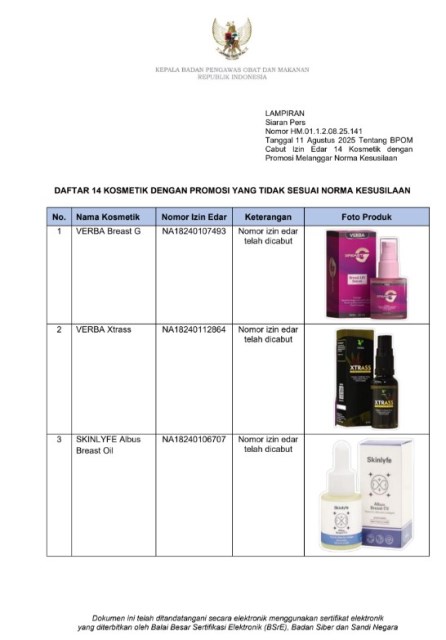 Baca juga: BPOM Cabut Izin Edar 21 Produk Kecantikan