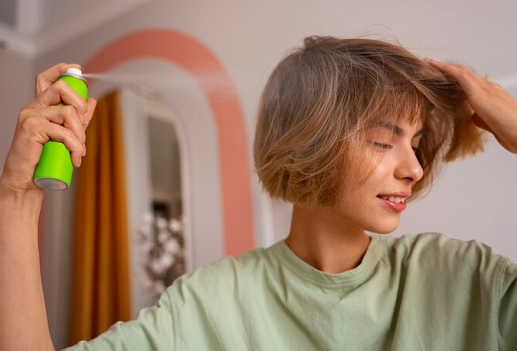 Agar rambut yang diwarnai tetap terlihat segar, balikkan rambut dan semprotkan sampo kering pada akar rambut untuk menyerap minyak.