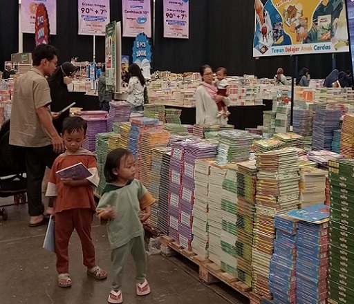 (Penataan rak buku di bazaar BBW tahun ini dibuat lebih luas sehingga anak-anak lebih nyaman. Foto: Dok. Yuni)
