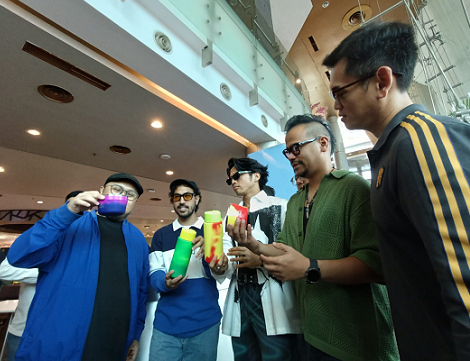 (Para personel NIDJI mencoba produk Change Colour Tumbler di pop-up store franke green yang berlokasi di PIM 1. Foto: Dok. Yuni)