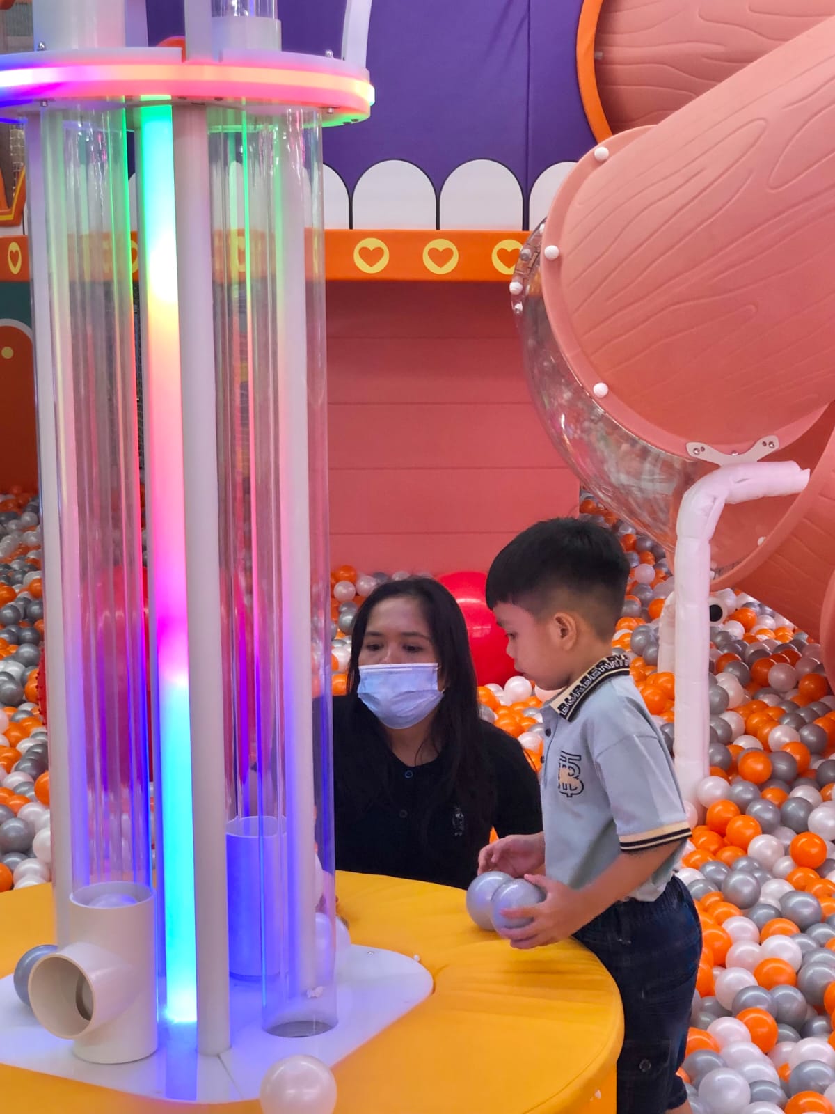 Beragam wahana dan area bermain tematik disuguhkan untuk mendukung aktivitas fisik, kreativitas, serta kemampuan motorik anak, seperti kolam mandi bola, trampolin, go-kart, hingga area rainbow slide.