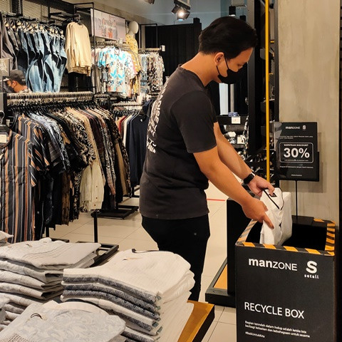 Manzone menempatkan recycle box bagi kamu yang ingin mendonasikan pakaian bekasnya yang sudah tidak digunakan untuk diupcycling oleh Setali Indonesia. Recycle box ini didistribusikan di lima titik showroom Manzone yang ada di Jakarta, yaitu Pondok Indah Mall 2, Gandaria City, FX Sudirman, Mall Kelapa Gading 3, dan Kota Kasablanka.