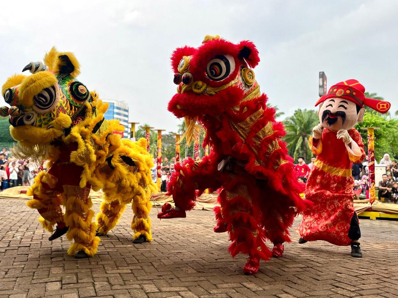 Puncak kemeriahan perayaan Imlek dihadirkan melalui pertunjukan barongsai, sebuah atraksi budaya yang selalu menjadi pusat perhatian pengunjung.