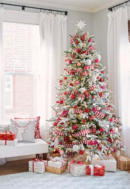 (Pohon Natal warna klasik merah putih. Foto: Adam Albright/Dok. Bhg)