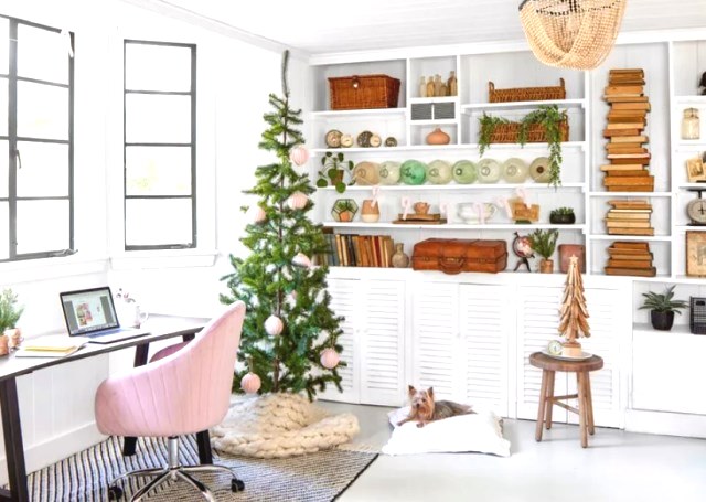Robinson merekomendasikan untuk mencampurkannya ke dalam pohon cemara hijau subur atau cabang holly untuk mencegah skema menjadi terlalu manis. Padukan warna merah muda pucat dengan aksen hijau muda untuk sentuhan kontemporer pada palet Natal klasik.
