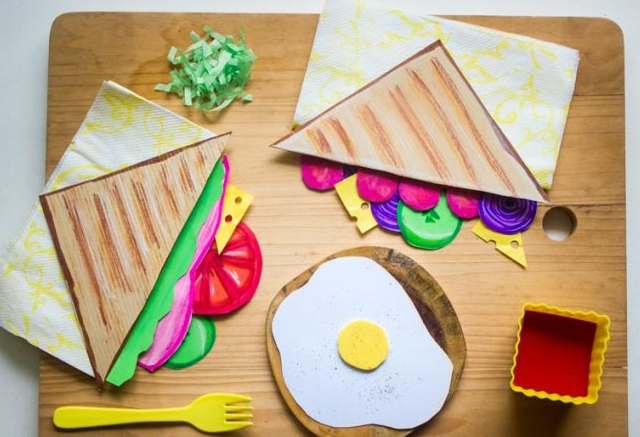 Mainan pura-pura adalah yang terbaik dan kamu bisa membuatnya sendiri dari tutorial yang ada di YouTube. Kamu bisa buat sandwich , pasta, donat, pai, atau sushi dari kertas. Anak pasti akan semangat!