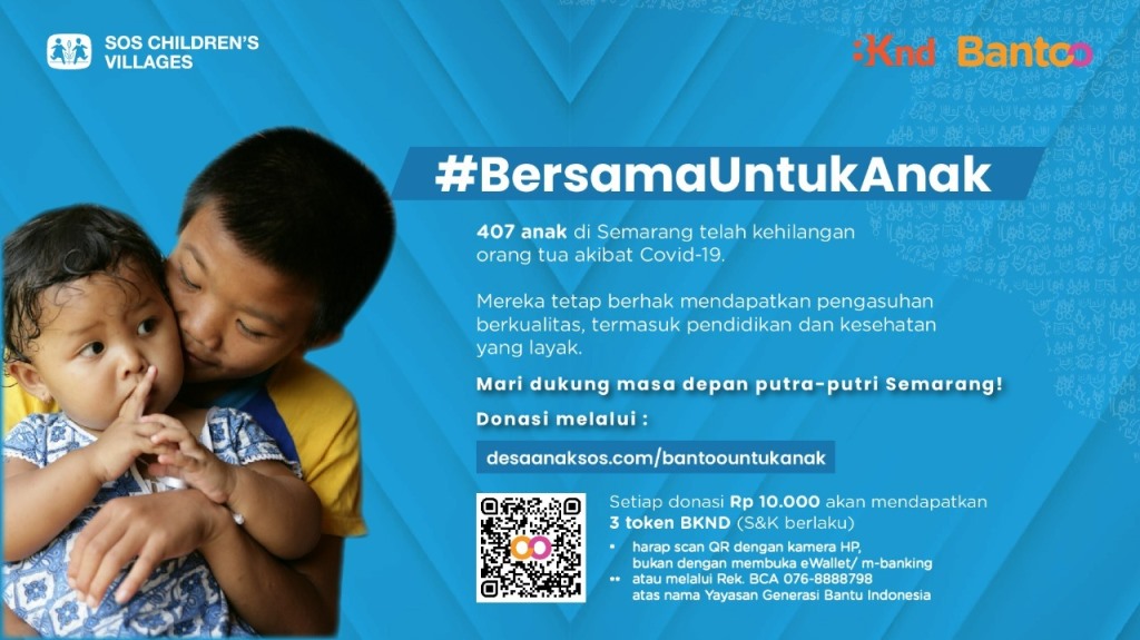 Melalui webinar #BersamaUntukAnak “Aktualisasi Diri melalui Kekuatan Kebaikan” diharapkan dapat menjangkau lebih banyak pihak-pihak yang ingin merespon dampak pandemi terhadap anak-anak Indonesia, khususnya anak-anak yang telah kehilangan orang tua di Semarang bersama SOS Children’s Villages Indonesia dan Bantoo.id.