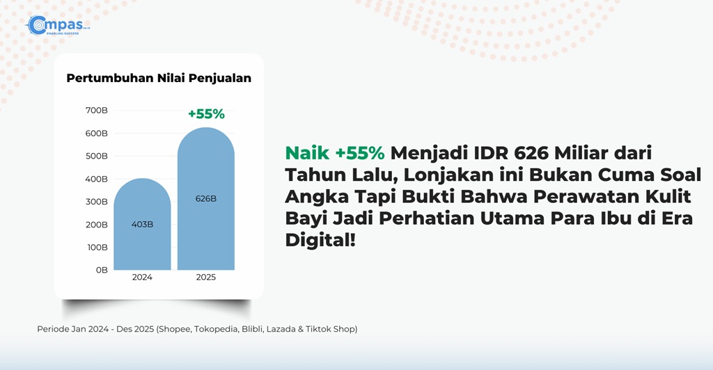 CEO Compas.co.id, Hanindia Narendrata, menyebut tren ini mencerminkan meningkatnya kesadaran orang tua, khususnya orang tua baru, terhadap pentingnya kesehatan kulit bayi sejak dini.