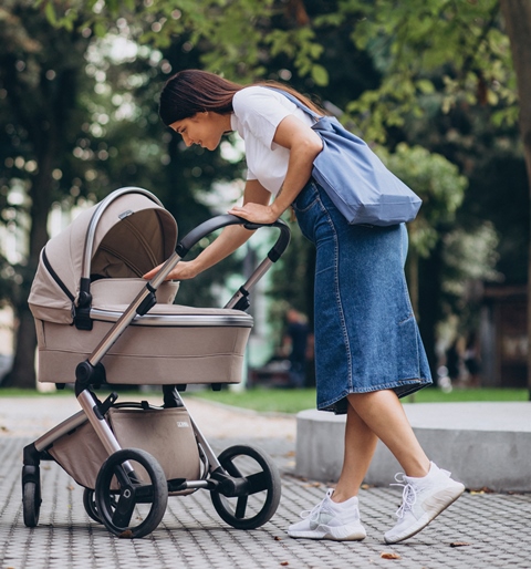 (Beda pram dan baby stroller yang paling utama adalah stroller mengadap ke orang yang mendorongnya serta dilengkapi tudung yang melindungi bayi dari panas, hujan dan angin. Baby stroller didesain dengan posisi bayi berjauhan dengan orang yang mendorongnya. Foto: Ilustrasi/Dok. Freepik.com)
