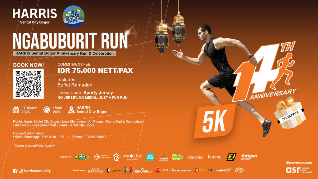 Bogor: Mengisi waktu menjelang berbuka puasa tak selalu harus dengan berburu takjil. Dalam rangka merayakan ulang tahun ke-14, HARRIS Sentul City Bogor menghadirkan event spesial bertajuk Ngabuburit Run 5K – Special Anniversary Edition yang akan digelar pada 7 Maret 2026.