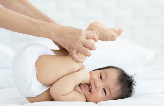 Sembelit pada bayi kurang dari 6 bulan juga bisa diatasi dengan cara mengayunkan kedua kakinya. Gerakan ini bisa mendukung pergerakan di saluran cerna, sehingga kotoran akan lebih mudah dikeluarkan.