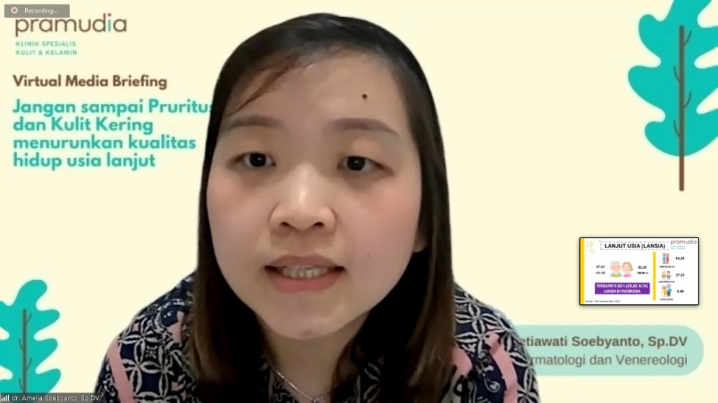“Pasien Lansia dengan keluhan kulit kering memang belum dapat sembuh total dengan cepat dan akan bertahan dalam waktu lama, karena memang banyak faktor yang berpengaruh baik faktor genetik, internal maupun eksternal,” ujar dr. Amelia.