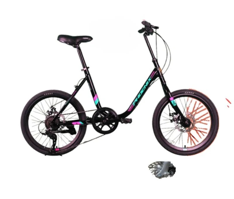 Sepeda lipat ukuran 20 inci ini cocok untuk dewasa dengan desain two tone color. Dibekali 7 tingkat kecepatan gear untuk variasi ketika melintasi medan berbeda.
