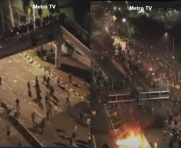 (Segera cari air untuk membersihkan wajah dan mata kamu terlebih dahulu saat terkena gas air mata. Foto: Dok. Tangkapan layar YouTube Metro TV)