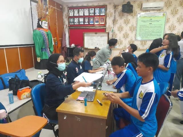 Kegiatan CKG dilaksanakan sebanyak tiga kloter, sebab banyaknya siswa dari kelas 10-12.