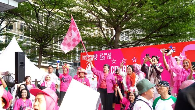 (Wakil Ketua MPR RI, Lestari Moerdijat saat melepas jalan sehat Indonesia Goes Pink bertema Celebrating Life Above and Beyond. Foto: Dok. Istimewa)