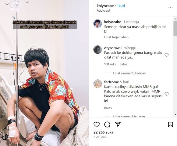 Tapi ternyata, pembengkakan ini juga bisa muncul di testis pria, lho, persis seperti yang dialami oleh pemilik akun Instagram Koirapat Pormponpitak/@koiyocabe.
