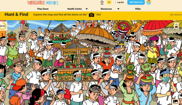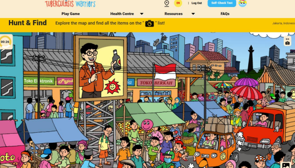 TB Warriors: Hunt & Find (Cari & Temukan) merupakan permainan yang mengajak publik dan anak muda untuk memahami tentang penyakit tuberkulosis (TBC). Permainan virtual yang dapat dilakukan secara berulang ini bertujuan mendorong dan membentuk perilaku dalam menghadapi dan menangani TBC, khususnya untuk melakukan pemeriksaan, pencegahan, hingga pengobatan.