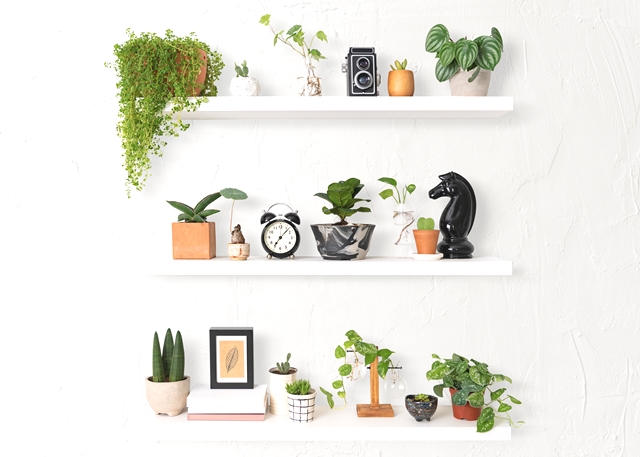 Kamu harus memilih dekorasi yang sekiranya tak menghabiskan banyak ruang sehingga ruangan terkesan tetap luas meski kamu meletakkan banyak dekorasi. Seperti menggunakan rak dinding sebagai rak pajangan atau rak buku.