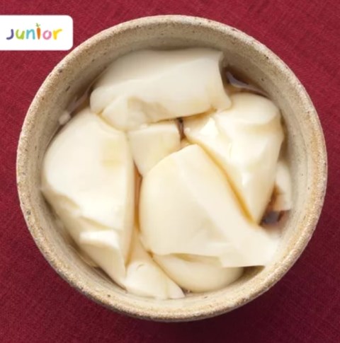 - 4. Dalam wadah saji, sendokan puding tahu ke dalam mangkok. Tuang dengan air jahe hangat sesaat sebelum menyajikan