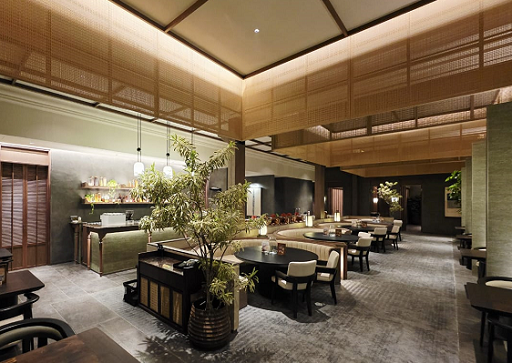 Nuansa alam yang menenangkan ini berpadu harmonis dengan interior elegan bergaya kontemporer, lengkap dengan sentuhan kayu hangat dan pencahayaan lembut yang menambah kenyamanan bersantap.