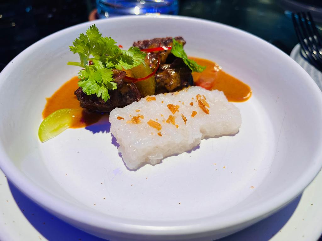 Semangat cita rasa Indonesia sangat kuat di menu Braised Oxtail Massaman Curry Sticky rice. Dok. A. Firdaus/Medcom