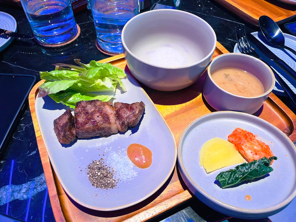 Chef Denny menyuguhkan menu beragam, mulai dari potongan daging terbaik seperti Hanwoo Striploin 330gr, Ninja-Gyu Ribeye 330gr, hingga Kagoshima Tenderloin 220gr—semuanya disajikan bersama pelengkap klasik seperti Japanese steamed rice, miso soup, kimchi, dan crisp romaine lettuce.