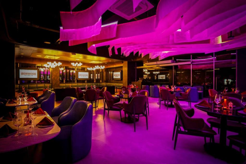 Berlokasi di Level 3 Topgolf Jakarta, atmosfer ruang Ironwood dirancang untuk mencerminkan semangat urban Asia yang progresif, ekspresif, dan penuh karakter. Cahaya neon warna-warni menjadi aksen visual utama yang membangkitkan semangat malam khas kota metropolitan; penuh energi, dinamis, dan berani.