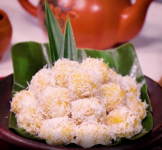 5. Gulingkan klepon ke dalam kelapa parut hingga rata, sajikan segera